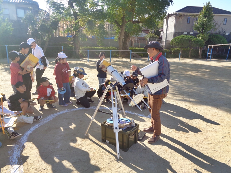 今年初めての出張天体観察会は11月7日に真津山小学校で開催しましたが、2度の天候不良の末、3度目に最高の天気のもとで実施することができました。